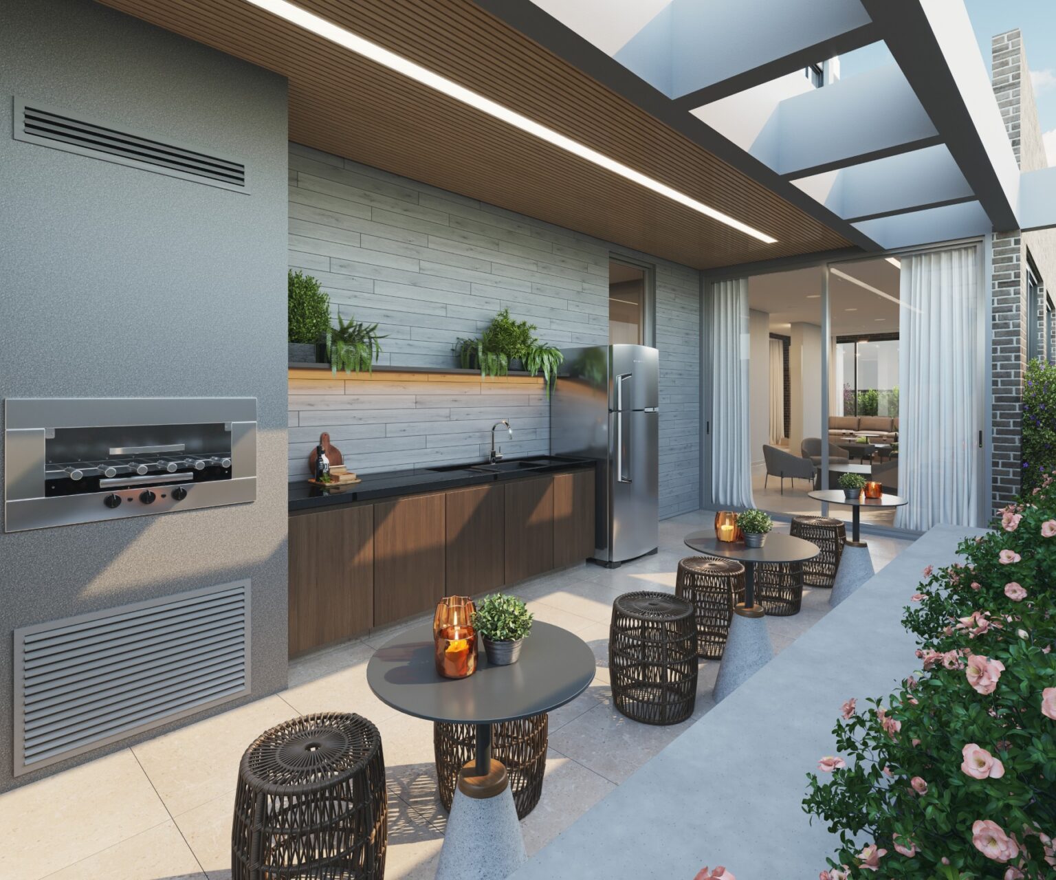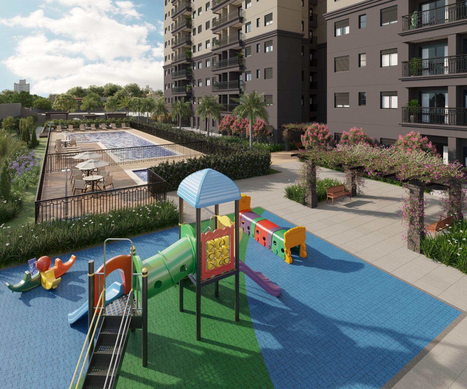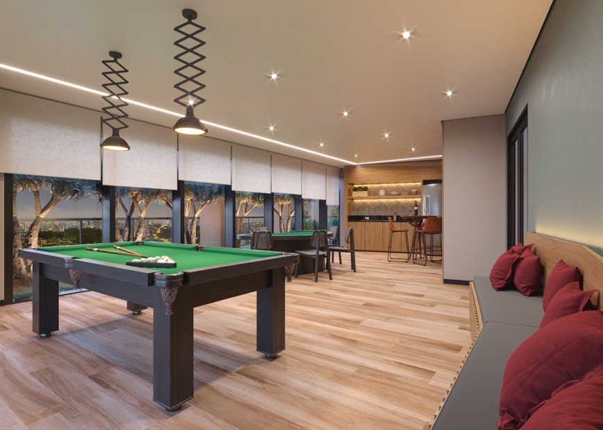 As animações 3D permitem mostrar o projeto como um todo — volumetria, áreas comuns, circulação e integração dos espaços — criando uma experiência visual forte para lançamentos, pré-lançamentos e ações comerciais digitais.